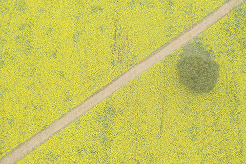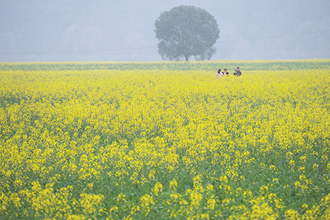 ◎ 建德市下涯鎮之江村黃饒半島上,五百多畝油菜花盛開,吸引了各地遊客前來感受新安江邊的春日美景。(無人機照片)