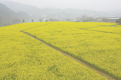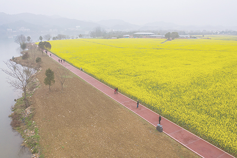◎ 建德市下涯鎮之江村黃饒半島上的油菜花漫山盛開。(無人機照片)