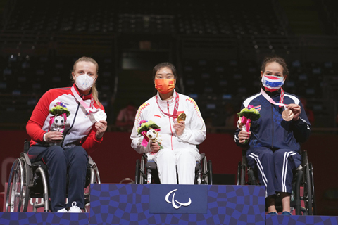 輪椅擊劍賽場再傳捷報,25日剛獲得女子佩劍個人B級賽金牌的譚淑梅,又將女子重劍個人B級賽金牌收入囊中,這也是中國輪椅擊劍隊在本屆殘奧會上的第五枚金牌。