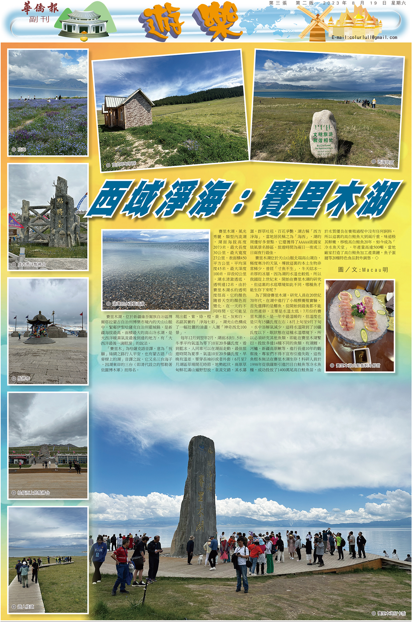 賽里木湖,風光秀麗,類型內流湖,湖面海拔高度2073米,最大長度30公里,最大寬度27公里,表面積450平方公里,平均深度45米,最大深度100米,岸長92公里,湖水清澈透底,透明達12米,由於賽里木湖水的透明度很高,它的顏色隨着天空的顏色而變化。在一天的不同時間,它可能呈現出藍、紫、綠、橙、黃、紅、灰和白,名副其實的「淨海七彩」,湖光山色構成了一幅壯麗的油畫,入圍「神奇西北100景」。