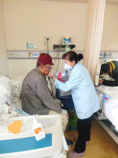 此前,我陪父母到深圳某健康養老陪護公司,學習護工給老人清潔口腔——減少口臭,增加食欲,預防口腔感染,觀察口腔黏膜變化。對於牙齒稀少或無牙的老人,需要隨時、飯前、飯後漱口。第一,護工讓老人飲口水鼓漱後吐出反復清潔;第二,護工幫忙刷牙(牙齒晨、晚間口腔護理),讓老人半坐位、濕潤口腔,分上牙、下牙、咬合面刷,長期臥床老人需要漱口、口腔擦洗。第三,口腔疾病、禁食高熱、鼻飼、昏迷等的老人都要護工協助,假牙先取下、用冷水刷淨放冷開水,口唇由裡向外清洗,工序繁瑣。我們就在那時認識剛拿護工證的護工阿珍,她說:「我的護工證,你們可能覺得簡單,但高年齡拿證真難,為了高效工作,我願意!」