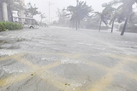 颱風「潭美」挾強風雨襲海南三沙 永興島出現海水倒灌