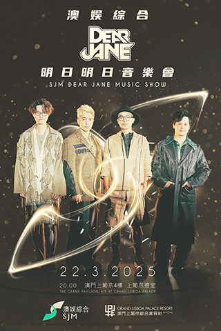 澳娛綜合度假股份有限公司(「澳娛綜合」)將於3月22日在澳門上葡京綜合度假村的上葡京禮堂舉辦「澳娛綜合Dear Jane 明日明日音樂會」。適逢香港人氣搖滾樂隊Dear Jane成軍二十周年,屆時他們將貫徹獨特的流行搖滾風格,演繹一系列耳熟能詳的經典歌曲,為樂迷帶來震撼人心與充滿能量的難忘音樂盛典。