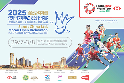 「2025金沙中國澳門羽毛球公開賽」獲世界羽毛球聯會授權,澳門特別行政區政府體育局全力支持及FELET器材贊助;其中決賽及準決賽將於國際羽毛球聯會的YouTube頻道「BWF TV」同步直播,讓世界各地的球迷都能觀賞這場精彩賽事,一同見證羽毛球選手激戰連場。