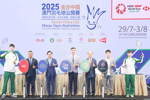 「2025金沙中國澳門羽毛球公開賽」周三在澳門倫敦人舉行記者招待會公佈比賽詳情,出席嘉賓包括澳門特別行政區政府體育局局長張子軒;世界羽毛球聯會賽事經理魯維安;澳門羽毛球總會會長鄺達財;輝厲國際控股有限公司營銷經理張鴻晟,以及金沙中國有限公司行政副主席王英偉博士。