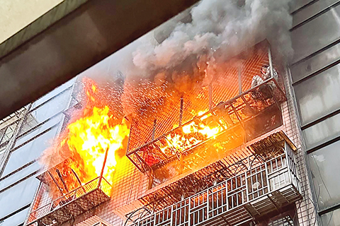 ◎ 二月一日,台北市吳興街三六八巷上午六點多傳出民宅火警火勢從公寓四樓陽台竄出。一名年約四十歲的男性一度受困坐在四樓陽台等待救援、被救出時、意識清楚,但全身有二度燒傷。而消防進去搶救時、另外在六樓樓梯間發現一名年約五十歲的女性、已呈現OHCA狀態、緊急送往國泰醫院搶救。最後火勢在一個小時內被撲滅。(香港中通社圖片)