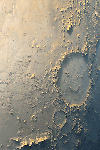 火星露出了笑臉。火星上的加爾隕石坑因其內部的紋路而聞名,這些紋路讓它看起來像是一張既微笑又眨眼的臉。這些標記最早是在一九七零年代由維京號太空船拍攝的照片中發現的。火星全球勘探者太空船於一九九六年至二零零六年繞著火星運行,並拍攝了這張特色照片。