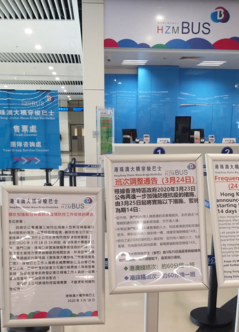 目前,港珠澳大橋是港澳兩地唯一的通道(除直省飛機外)。按照上述港、澳兩地政府的最新防疫措施,「港澳快線巴士」昨凌晨零時起暫停運營,港珠澳大橋港澳間運行的金巴也調整相關班次,即每小時一班,過往繁忙時期每十分鐘一班的情況恐怕要下半年才有可能復現。此外,也未見有的士抵達該口岸送客或接客。