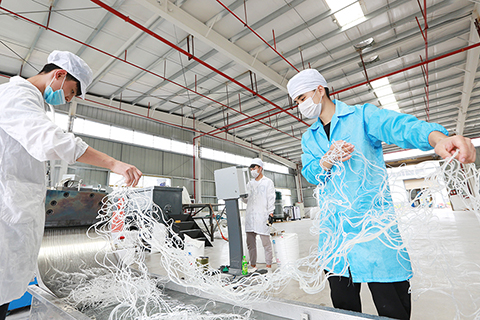 ◎ 六月十七日,易地扶貧搬遷群眾在松桃苗族自治縣一家製藥廠工作。(伍衛東 攝)