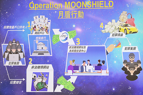 九日下午,香港警方舉行記者會簡介案情。近月,香港警務處網絡安全及科技罪案調查科鎖定了一個犯罪團夥。該團夥利用設立在海外的非法賭博網站,向香港市民提供足球、賽馬、線上賭場等非法賭博服務,同時利用虛擬銀行帳戶和快速支付系統「轉數快」收受賭注和清洗黑錢。