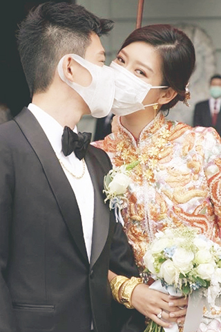 Jennifer表示,因安全理由拒絕除口罩,她跟Tim戴着口罩拍照,更應記者要求隔着口罩接吻。隨後,姊妹團余潔瀅、廖子妤、陳詩欣及鄧穎堯除下口罩跟Jennifer合照,更即場親吻新娘子。