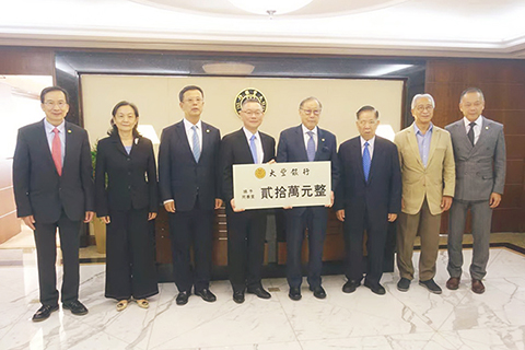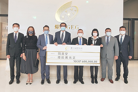 日前,同善堂主席崔世平、副主席莫均益、值理容永恩和陸永根一行人拜訪大豐銀行,獲該行董事長何厚鏜、行長周鵬、副行長徐繼昌、陳劍平等盛情接待,該堂向大豐銀行負責人介紹並推廣該堂「沿門勸捐」活動,藉以宣傳守望相助的慈善精神,隨即舉行支票捐贈儀式,捐出善款澳門幣二十萬元正。