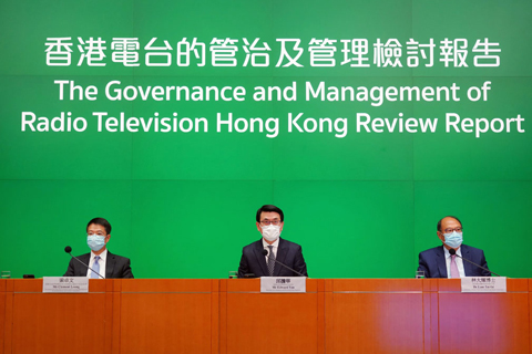 經過歷時七個月的檢討,特區政府十九日舉行記者會,公佈由專責小組提交的檢討報告。檢討報告長達九十三頁,從六方面檢討港台的管治及管理。