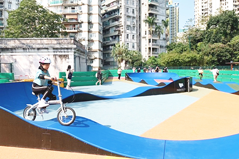 據介紹,新增設的Pump track(單車軌道)為本澳首次引入,軌道具環形彎牆及一定起伏的坡度,以增加單車遊玩的趣味及挑戰性。使用之單車/平衡車須符合場地要求,單車輪徑尺寸須符合十二至二十二吋,且單車上必須裝有後煞車系統或前後煞車系統。