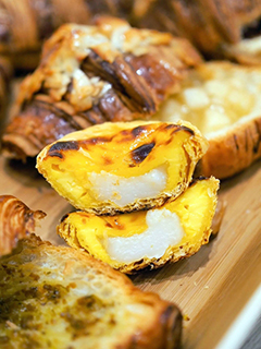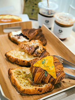 這裡主打可頌,也就是牛角包,所以出品特別講究,以台灣麵粉配合麵包師傅一絲不苟的製作過程及功力;一個麵包便需要用上三日時間來製作,務求做到外皮酥脆,口感韌中帶軟的效果,最關鍵是不會吃後整口都泛油,不然吃兩口就膩了,無論可頌是以芝士沙甸魚、芝士蒜蓉、檸檬或杏仁蘋果的形式示人都同樣可口。