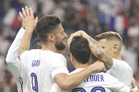 不過賓森馬傷出未有影響法國火力,代替他的基奧特下半場大發神威,八十三分鐘門前搶點成功射成二比0,補時階段再接應賓耶達傳中攻入個人第二球,協助法國大勝三比0完場。法國連續兩場熱身賽向威爾士同保加利亞派「三蛋」,為下周三(十六日)凌晨分組賽首仗對德國注下強心針。◇