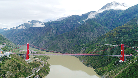 奔流於橫斷山脈間的大渡河,在雅安市天全縣與甘孜州瀘定縣之間切割出絕壁大峽谷,歷來是川藏公路上的交通天塹。如今,瀘定大渡河大橋橫跨峽谷,縮短了甘孜涉藏地區和成都間的時空距離,成為惠澤兩岸的超級工程。