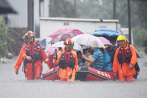 搶險救災 2021-07-09 03:30:00 ◎ 七月八日,合肥市消防救援支隊救援人員用皮划艇轉移受困民眾。當日,安徽省合肥市突降暴雨,市區部份地區內澇,導致人員被困、車輛被淹。截止到當日十七時三十分,合肥市消防救援支隊、合肥市藍天救援隊共轉運受困民眾七十二人。(中新社)