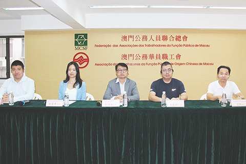 由澳門公務人員聯合總會、澳門公務衛生員工協會、澳門醫務助理人員協進會合辦的《二零二一年澳門特區公共衛生部門人員工作狀況調查問卷》的結果發佈會昨日上午假荷蘭園二馬路荷蘭大廈三樓A座舉行,出席者包括澳門公務人員聯合總會理事長彭冠豪、澳門公務衛生員工協會副主席余兆安、澳門醫務助理人員協進會會長曾明,以及澳門公務人員聯合總會青年委員會主任劉嘉翀、秘書長柯麗香。