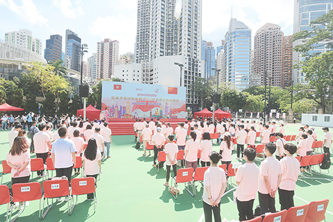 當日的活動還邀請到二十位一九九七年出生的香港青年組成合唱團,獻唱《前》及《我和我的祖國》,與在場人士共同表達對祖國、對香港的美好祝願。