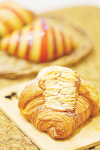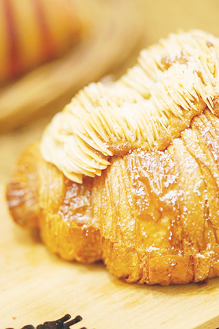 香酥鬆脆的牛角包內,是滿滿的杏仁奶餡,整個甜度剛好,是配茶佳品無誤。據店主透露,光是把外層的杏仁排列好,已經耗了十五分鐘,這舉動令人佩服。
