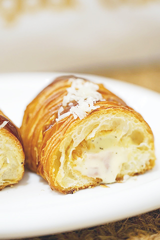 層次已說明了一切!實在想像不到餅皮是經過了幾多重的折疊,才能做出如此工整又豐富的層次;內餡以芝士腸去主持大局,選材好,芝士腸入口多汁濃郁,連同牛油香氣與妙絕的口感,真的是肥死而無憾。