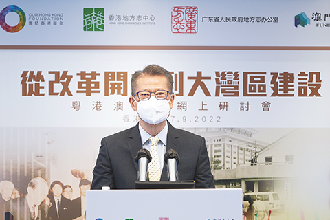 當日,團結香港基金、香港地方志中心、廣東省政府地方志辦公室及澳門基金會聯合舉辦「志史鑒今砥礪前行:從改革開放到大灣區建設」研討會,在香港、北京、廣東及澳門同步線上線下舉行。