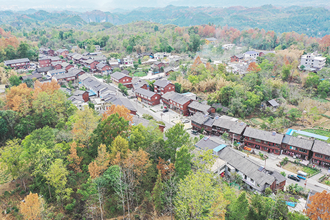 古寨秋景 2022-10-01 03:30:00 ◎ 九月三十日,航拍貴州務川龍潭古寨秋景。龍潭古寨位於貴州省遵義市務川仡佬族苗族自治縣大坪街道,距今已有七百餘年歷史,是仡佬族保存最好的一個民族村寨。(無人機照片)(中新社記者瞿宏倫攝)