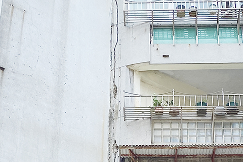 【特訊】有街坊反映,指水坑尾街和素鴉利神父巷交界的一座大廈外牆出現裂縫,部份位置有石屎剝落的痕跡。水荷雀坊會理事長蘇冠忠和大廈工作委員會主任何戊彬關注事件,呼籲大廈業主定期保養大廈外牆,以免意外發生。