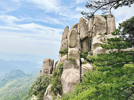 佛緣無處不在,花台景區也有「天然睡佛」奇觀。花台景區由大花台、小花台組成,是九華山高山景區之一,是九華山風景區以自然景觀為主的遊覽區。我們乘坐每人160元的索道到達山上。這裡作為九華山核心景區之一,更是九華山國家森林公園、地質公園的核心地段,位於九華山中部,面積10平方公里。景區內風光壯美,景色綺麗,以奇峰怪石、雲海霧凇、花的海洋而著稱,素有「靈山九華,美在花台」的說法。景區內有中國內地品種最為集中的稀有高山杜鵑花,紅、黃、白、紫等爭相綻放,宛若「天街花市」,儼然一幅華美的山水畫。
