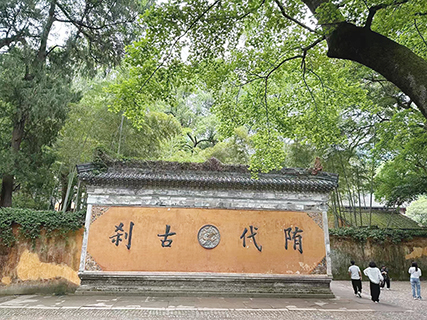 下午我們又去國清寺,但已閉門,我們就參觀旁邊的一座同年建造的隋塔。這座歷經1400多年、只剩中部磚塔部位的隋代古塔,至今仍令人震撼。隋塔,位於浙江省天台山國清寺外,高9層,屬於中國現存第二古老的塔。隋塔是國清寺的標誌建築物。為隋開皇十八年,晉王楊廣為報智者大師給他授菩薩戒的師恩而建造的報恩塔。