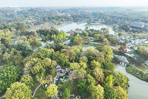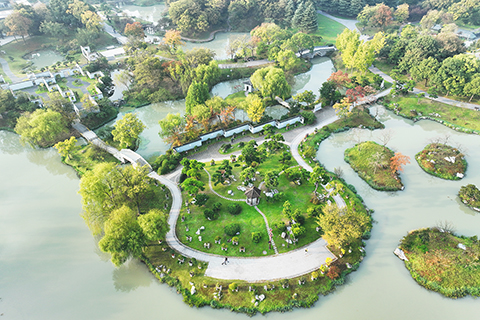 深秋時節,江蘇揚州瘦西湖風景區秋色如畫。