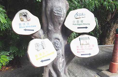 那天我們沿著水泥路前行,橋下有河水流動,相信那便是白銀鄉河了,它流經銀礦洞及銀礦瀑布。據說它的排水改善工程在2011年已經完成,工程除了保留了天然河床的礫石和鵝卵石,還在河裡築了魚梯(即魚道)設施,好為洄游性的魚類提供了在人工水利環境中生存和移動的路徑。不久,我們來到白銀鄉的門樓,整體來說,門樓尚算保養良好,在門樓的不遠處,有一座名為「奕園」的私人別墅。據說這座大宅建於戰前,是「義和隆米行」東主楊瑞山所有,內裡建築包括花園洋房、噴水池、泳池,羽毛球場及一大片空地,佔地7.3公頃,十分寬敞雅致。走訪那天,「奕園」的兩個入口都是重門深鎖的,我們也只好隔著閘門在外面窺看了。奕園門外不遠處,建有一座小磚屋,是方便遊客的洗手間,可惜因為日久失修,已經破爛。