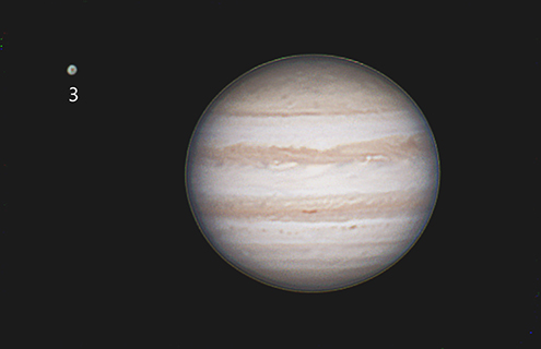 十一月期間是木星最近地球的月份是觀測的佳星時間,而現在可透過圖像軟件功能,可使小口徑望遠鏡拍出來的影像,接近大口徑望遠鏡的像質。圖中見木星的衛星木衛三表面的層次,而用一百五十二毫米口徑折射望遠鏡能拍到這細節,一點也不容易呢。