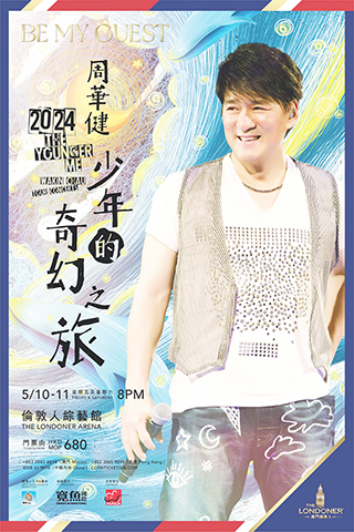 華語創作男歌手、製作人周華健將於2024年5月10日及11日登陸澳門倫敦人的倫敦人綜藝館,為歌迷帶來兩場「少年的奇幻之旅」澳門演唱會。門票將於2024年3月11日(星期一)中午12時起透過金光票務公開發售,本次演出只限網上及電話訂票。