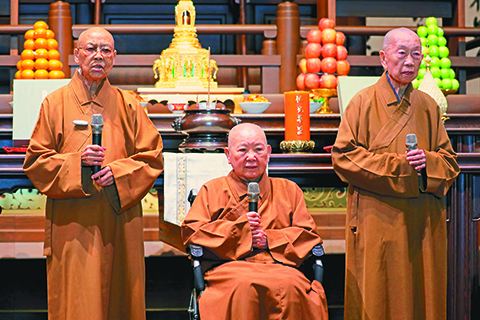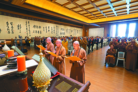 【人間社記者許貞慧、陳秀卿高雄報導】適逢佛光山開山祖師星雲大師出家紀念日及佛光山信徒香會,佛光山3月10日舉行「佛光山開山祖師星雲大師讚頌會」,僧信二眾齊聚總本山,以音聲做佛事,清淨心與大師印心,發願弘傳人間佛教。會中,南韓三論宗致贈《高麗大藏經》東洋版一部,供養佛光山、星雲大師。現場以YouTube同步線上直播,實體與雲端與會逾8000人。