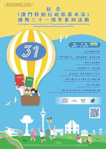 【特訊】為紀念《中華人民共和國澳門特別行政區基本法》頒佈三十一周年,澳門基本法推廣協會、法務局、市政署和教育及青年發展局將合辦研討會、嘉年華、圖片展、親子普法活動、演講比賽等系列活動,以持續逾九個月的多元跨媒體普法宣傳,加深社會各界對《澳門基本法》的了解,準確認識「一國兩制」方針,提升國家認同感。