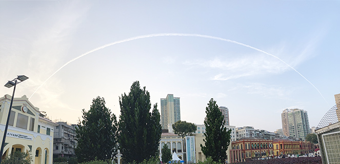 飛機雲,又名飛機尾跡、航空雲、凝結尾。去年3月16日傍晚,正走在塔石廣場,忽然大家都舉起手機向太陽西下的方向,原來天空除了有夕陽餘輝和彩虹雲,還有一道被飛機劃過天際的「飛機雲」,而且還是半圓型,從東向西跨越,如一道彩虹橫跨塔石天空,大家都讚歎能在傍晚的塔石廣場見證這樣一個難得的天象奇遇,實在幸運。
