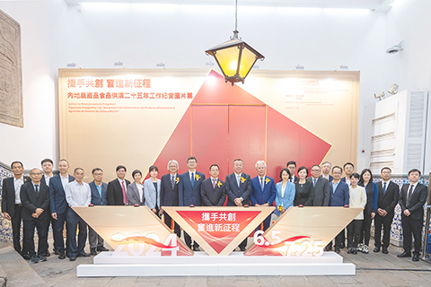 為慶祝中華人民共和國成立七十五周年暨澳門回歸祖國二十五周年,由國家海關總署、澳門特別行政區行政法務司聯合主辦,拱北海關、市政署承辦的「攜手共創;奮進新征程─內地農產品食品供澳二十五年工作紀實圖片展」昨日傍晚假市政署畫廊揭幕。並由國家海關總署代表拱北海關總檢驗師、二級總監徐少凡、市政署市政管理委員會主席戴祖義、副主席羅志堅、柯嵐、市政署市政諮詢委員會主席司徒民義、副主席鍾國榮主禮。