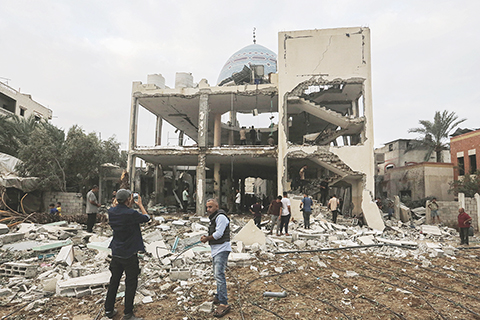 巴勒斯坦伊斯蘭抵抗運動(哈馬斯)媒體辦公室6日發表聲明說,以色列軍隊當天轟炸加沙地帶中部一座清真寺和一所學校,造成至少24人死亡、93人受傷。聲明說,這兩處地方容納數百名流離失所的民眾。過去48小時裡,以軍還轟炸了加沙地帶27處房屋、學校和安置中心。