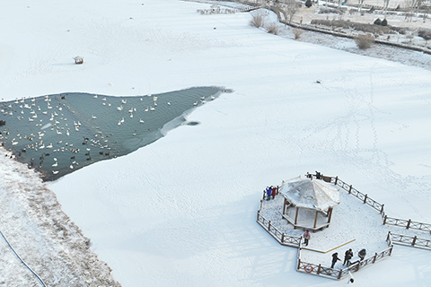 台灣油礦陳列館 旅遊專列「穿越」奇幻時光 中國多地迎來降雪天氣 2025-01-11 03:30:00 近日,受冷空氣影響,多地迎來降雪天氣。 新華社 圖 平台 ◎ 1月9日,在山東省榮成市櫻花湖體育公園觀景平台,園林工人在清雪(無人機照