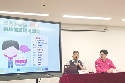 【專訪】澳門中華學生聯合總會聯同聖若瑟大學社會發展觀察中心,發佈《澳門中學生精神健康調查二0二五》報告,顯示焦慮及情緒困擾問題值得社會關注。