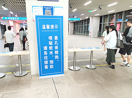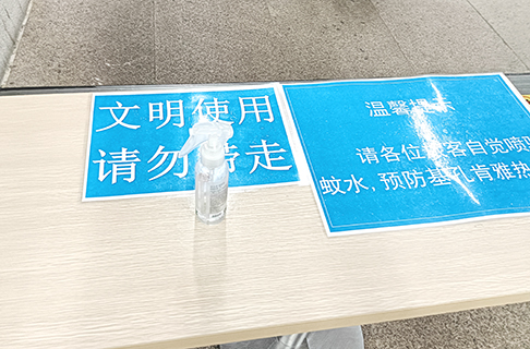 7月的倒數第二天,從青茂口岸出境,在經過內地海關的崗位後,還沒上擺渡電梯前的中間廊柱邊,突然比平常多出了兩張小條桌,每張桌子上,又擺放兩支驅蚊水。廊柱和桌子上,都貼有溫馨提示:請各位旅客噴驅蚊水,預防基孔肯雅熱。