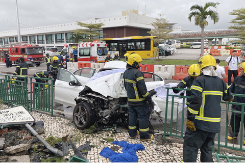 治安警及消防局在昨早約六時接報友誼大馬路近大賽車看台,發生涉私家車的交通意外,到場發現一部私家車停在路邊,車頭及車身嚴重變形,安全氣袋彈出,車內有七人被困,全部意識模糊。消防利用工具瞬即救出七名傷者,由救護車分送鏡湖及山頂醫院搶救,至約中午時份,其中女司機及兩名男乘客傷重不治,其餘四人至昨日下午五時半仍在搶救。