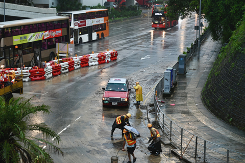 【又訊】香港天文台昨日一度發出黑色暴雨警告信號,維持超過十一個小時。渠務署表示,派遣超過一百八十支緊急應變隊伍處理水浸個案,重複巡查及清理全港約二百四十個因淤塞容易引致水浸的地點。
