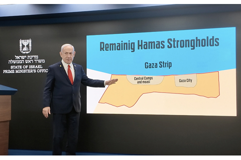 內塔尼亞胡在記者會上說,目前以軍已控制加沙地帶約70%至75%地區,哈馬斯在加沙城和位於馬瓦西一帶的中部難民營內保有兩個主要據點。以安全內閣已下令以軍「拆除」兩個剩餘哈馬斯據點。他稱,這是「快速結束戰爭的最佳方式」。