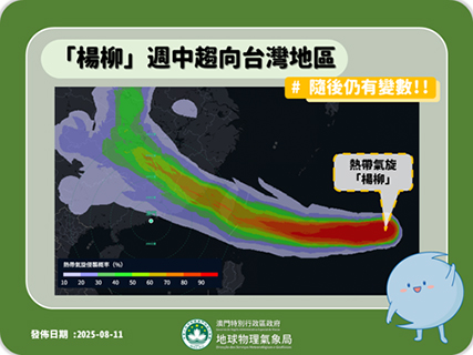 由於「楊柳」的路徑及發展仍有較大不確定性,本周後期天氣存在較大變數。氣象局將密切監測「楊柳」最新動態,並呼籲市民密切留意局方的最新天氣資訊,及早做好應對措施。