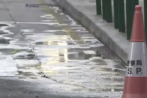 【特訊】黑沙環東北大馬路昨日下午突然出現懷疑有污水倒灌情況,附近一段行車線一度需要封閉,周邊充斥臭味。