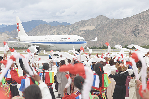 初秋的青藏高原,清風送爽。拉薩貢嘎機場紅旗飄揚,氣氛熱烈。