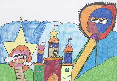 也不知睡了有多久,當我醒來的時候,我看到四周都是色彩繽紛的糖果,有趣的是這些糖果是會動來動去的!突然有一顆大白兔糖果向我走近,說:「女王,你終於醒啦!快快起來,要開始工作啦!」我心想:啊!我是女王?要工作?可是我還是小學生呀!還未回過神來,大白兔糖又說:「女王,今天的工作有點多,要吃三個杯子蛋糕、二支可樂和三個雪糕。」我鬆了一口氣,喃喃自語說:「真幸運,原來我的工作是要負責吃東西。」於是我開始張口大吃,吃啊吃,最後懷著依依不捨的心情吃下最後一口,並滿足地打了一個響震天的胃氣……突然,我被自己打胃氣的聲音吵醒了,咦!才睜開眼,我發現我的睡床旁邊滿地都是糖紙,我不暗呆了一會回想剛才發生的事情,才如夢初醒地想到,原來剛才我因為心心不忿而在床上吃下了一堆糖果,接著滿足地呼呼大睡了。這一切,原來都是夢!這時,客廳傳來媽媽温柔的聲音,說:「心心,爸爸剛下樓買了水果杯,你要不要和姐姐伴著布丁一起吃啊?」